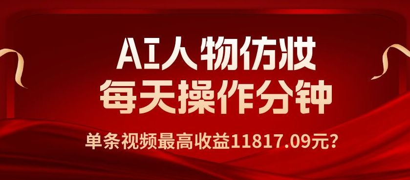 包工头i系列课程之第72:1个学员AI人物仿妆,每天操作3分钟,单条视频最高收益11817.09元?